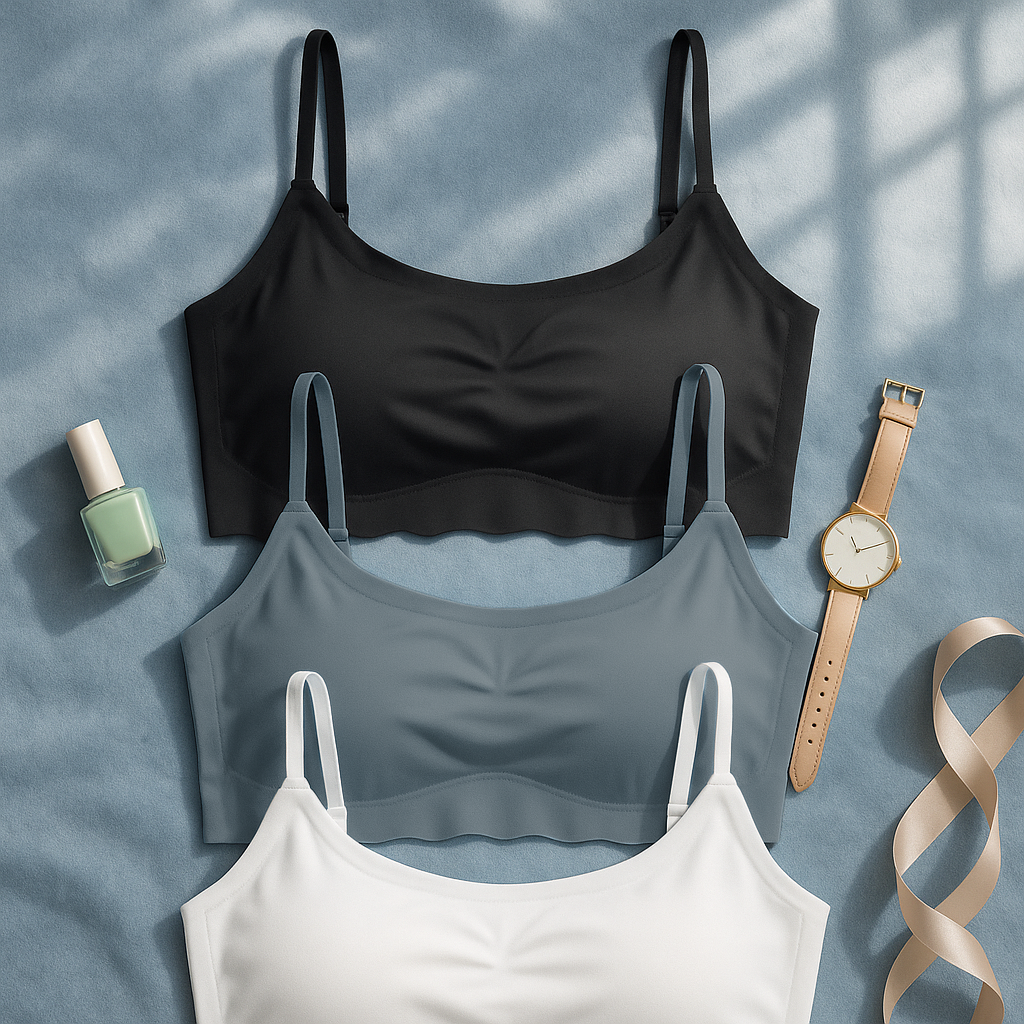 Ladies Seamless Bra Combo – Black, Grey and White Non-Padded Bralette with Straps (Copy) - M