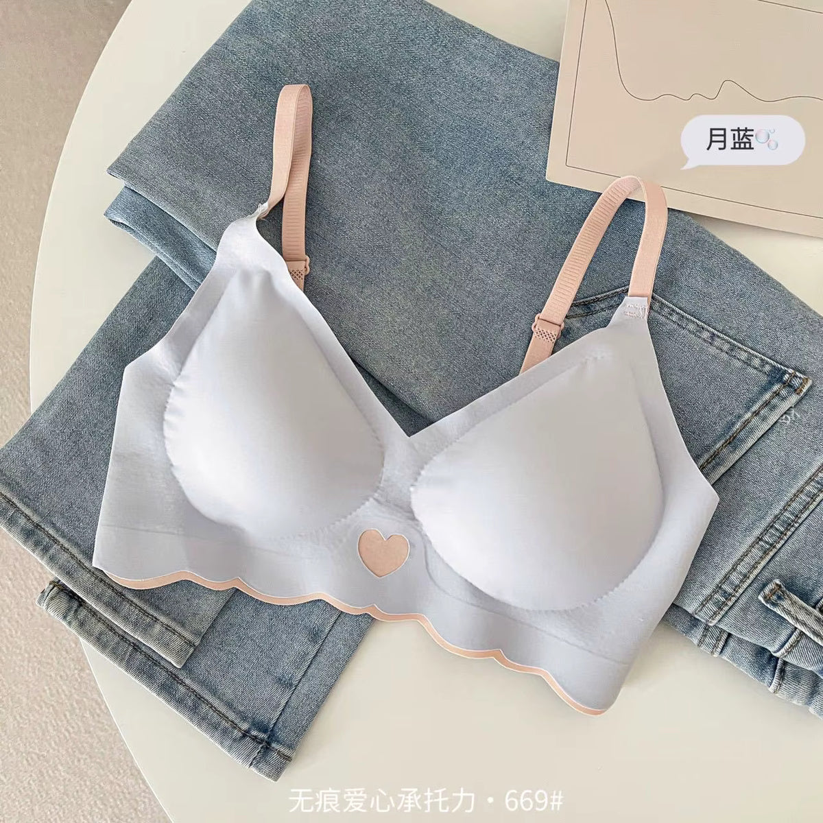 • ✔️ Pack of 2 – Stylish Peach & Sky Blue bras with heart design