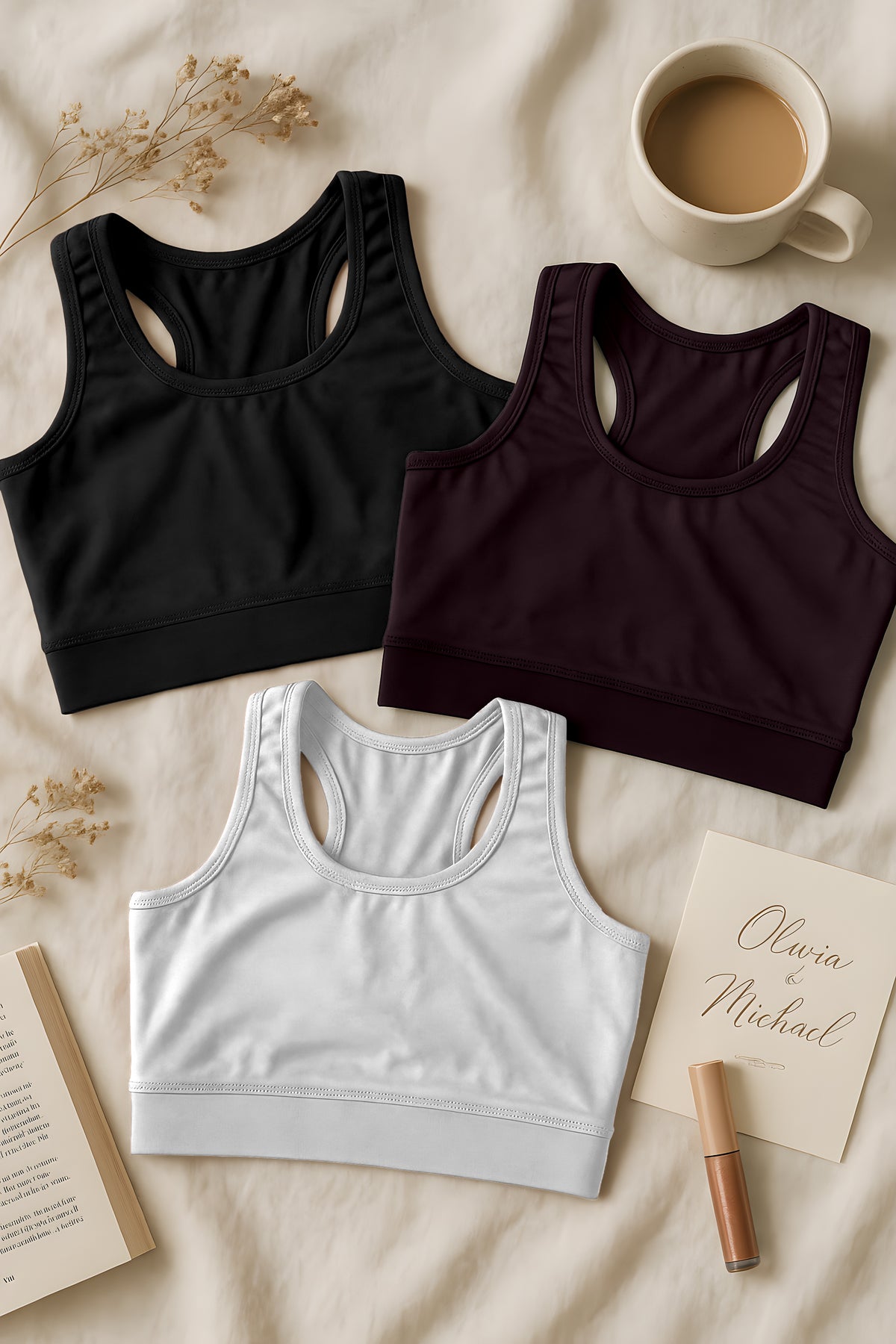 Stylish Women’s Racerback Sports Bra Pack – 3 Solid Colors for Gym, Yoga, Running & Daily Use - 28